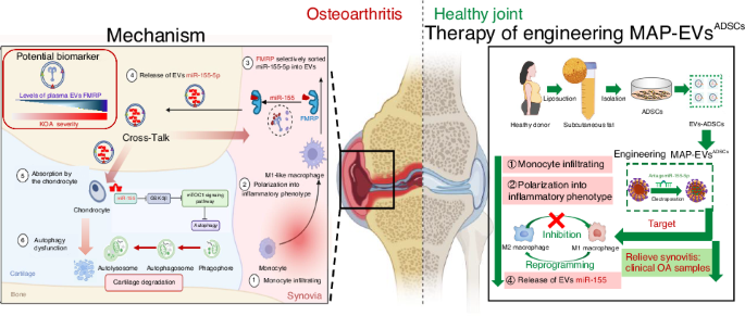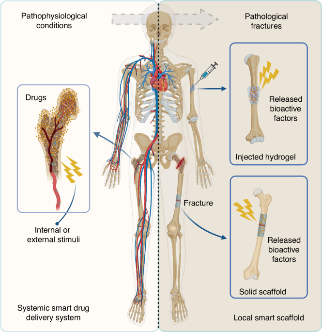 For scRNA-seq, freshly resected bone and marrow tissues were stored in tissue-preservation solution (Miltenyi Biotec) until processing. Samples were washed with PBS, cut into small pieces, and digested at 37 °C for 50 min with Collagenase II (150 U/mL), Collagenase IV (2 mg/mL), Dispase II (1.2 U/mL), and DNase I (50 U/mL). The digests were filtered through a 70 µm cell strainer and centrifuged at 300 × g for 5 min. After red-blood-cell lysis (Miltenyi Biotec), cells were washed in PBS containing 0.04% BSA, passed through a 35 µm filter, and loaded onto the 10x Genomics Chromium Controller for single-cell capture using the Single Cell 3′ v3 reagent kit. Libraries were sequenced on an Illumina 150 bp paired-end run, and reads were aligned to the human reference genome (GRCh38) with CellRanger v3.1.0 to generate the single-cell barcode matrix. Cell types were defined from their gene-expression profiles using established marker genes for bone and immune cells (see Supporting Information). All downstream analyses, including Seurat-based integration and donor-level batch correction, as well as differential-expression and GSEA analyses, were performed in R (RStudio).