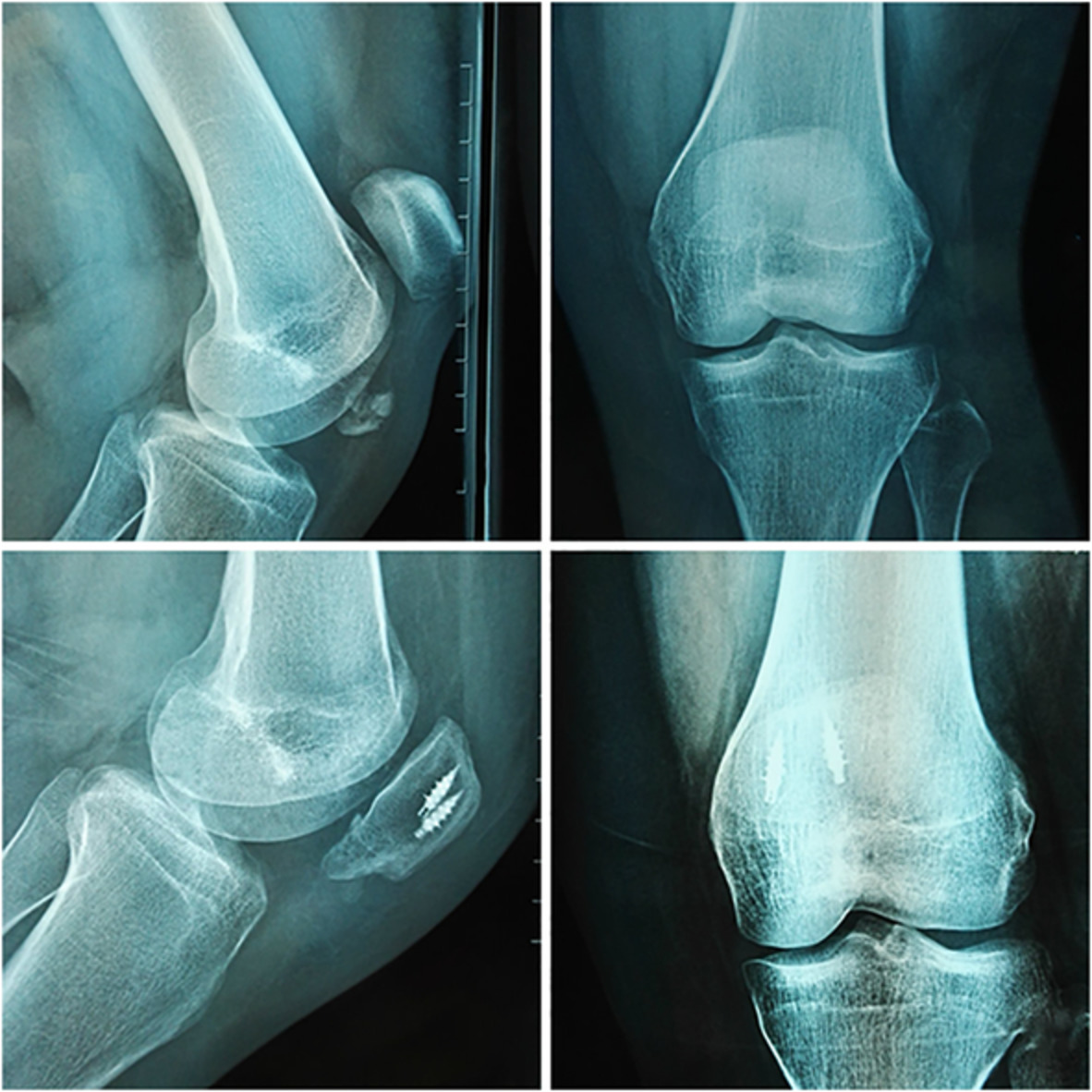 Postoperative ManagementAll patients were immobilized with a straight knee brace or cast, and postoperative functional exercise was directed by the surgeon. Appropriate knee flexion and extension exercise was performed 2 days postoperatively, active joint flexion and extension exercises 2 days postoperatively. Weeks 1 to 6 post-surgery, gradual transition from partial to full weight bearing was performed under proper protection, and then physical therapy is performed gradually to restore full range of motion of the knee.