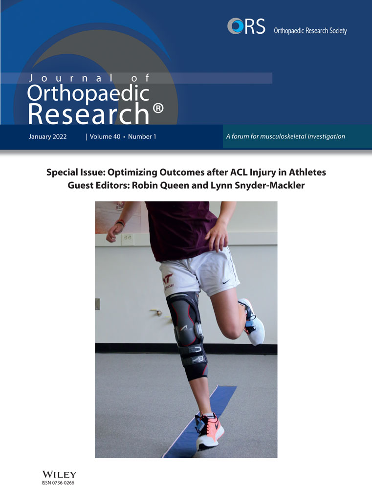 Anterior cruciate ligament (ACL) tears are one of the most common and devastating knee injuries.1, 2 Common among young, otherwise healthy, individuals, this injury can result in joint instability and leave other structures susceptible to further damage.3 While some elect to focus on rehabilitation to regain knee stability without an ACL, others elect to undergo ACL reconstructive surgery (ACLR).4, 5 Although ACLR restores stability within the afflicted limb it does little to prevent the development of posttraumatic osteoarthritis (OA).5, 6 Twenty-seven percent of individuals develop radiographic tibiofemoral OA within 5 years of surgery and upwards of 50%–90% do so within 10–20 years, primarily within the medial compartment.6-9 Those who develop OA after ACLR typically do so 15–20 years earlier than those without a history of traumatic knee injury, resulting in a “young patient with an old knee.”8, 10, 11 Thus, there is a critical need to understand the mechanisms associated with OA development so that preventative measures can be designed and implemented to delay disease progression.
