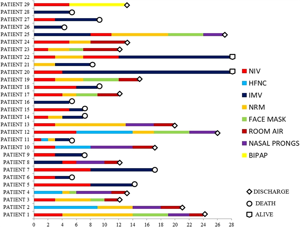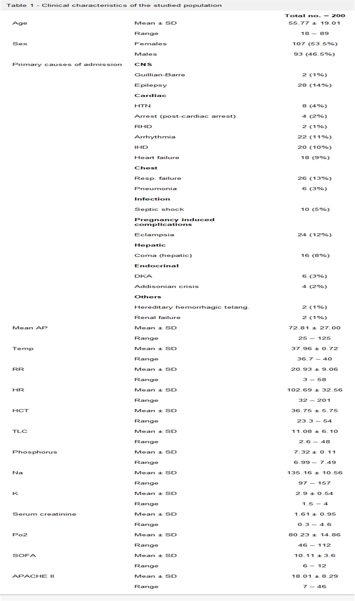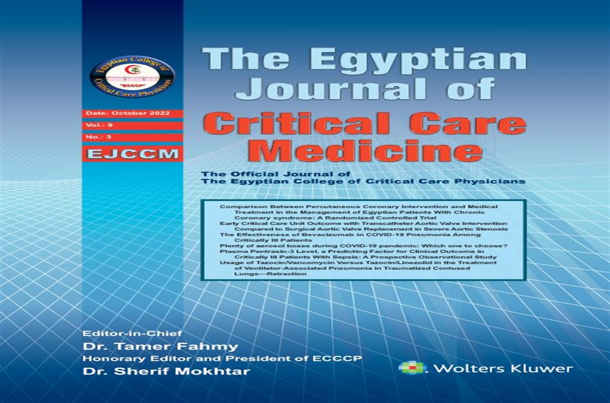 4 MethodsAll patients included in this study were subjected to the following: full clinical examination, APACHE II score was calculated for all patients on admission. SOFA score was done for all patients on daily basis. Before taking measurements and during the study period The patients were sedated using Propofol bolus dose with 1–2.5 mg/kg IV loading dose and Atracurium 0.4–0.5 mg/kg IV over 60 seconds, then 0.08–0.1 mg/kg 20–45 minutes after initial dose to maintain neuromuscular block and to overcome patient desynchrony.