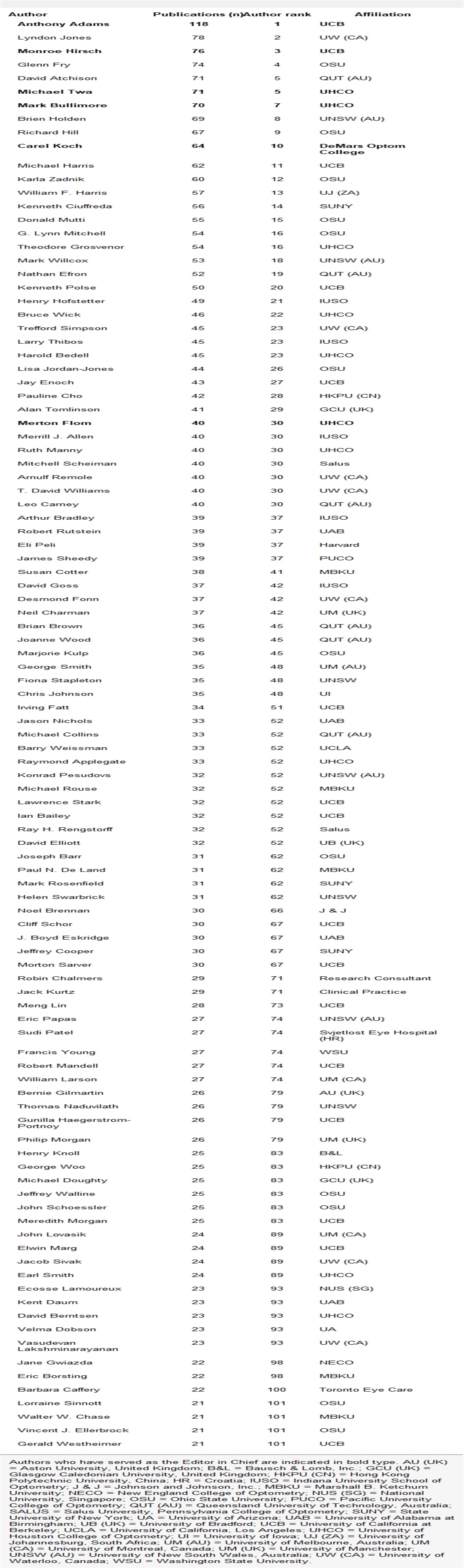 Editor in Chief Optometry and Vision Science University of Houston College of Optometry Houston, TX