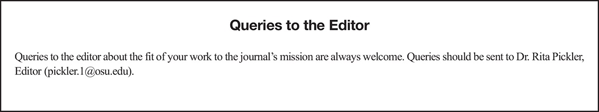 Rita H. Pickler, PhD, RN, FAAN, is Editor of Nursing Research and The FloAnn Sours Easton Professor of Child and Adolescent Health and Director, PhD & MS in Nursing Science Programs, The Ohio State University College of Nursing, Columbus.