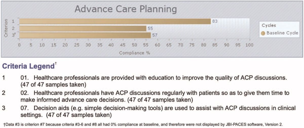 Methods:The project was conceptually informed by the JBI Model of Evidence-Based Health care and the JBI Evidence Implementation Framework. Baseline and follow-up audit data were collected and analyzed using JBI's Practical Application of Clinical Evidence System (PACES) software. The JBI Getting Research into Practice (GRiP) program was used to identify potential barriers and design intervention strategies. The project was conducted in a public hospital outpatient department in Uasin Gishu County, Kenya.